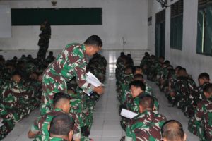 Makassar — Batalyon Artileri Medan 6/3 Kostrad melaksanakan kegiatan Diagnosa Test menggunakan Sarana Hp dan kertas untuk menjawab persoalan lisan, sebagai tolak ukur dalam mengetahui