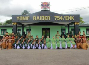 Timika, Sabtu (17/07/23). Pangdivif 3 Kostrad Mayjen TNI Choirul Anam, S.E., M.M., didampingi Ibu Ketua Persit KCK Koorcab Divif 3 PG Kostrad, Ibu Helmy Choirul Anam, melaksanakan kunjungan kerja ke Markas Yonif Raider 754/ENK/20/3 Kostrad. Kunjungan kerja di Yonif R 754/ENK merupakan rangkaian penutup kunjungan kerja Pangdivif 3 Kostrad di jajaran Brigif R 20/IJK.
