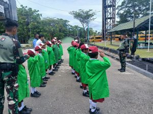 Rasa Nasionalisme harus ditumbuhkan sejak usia dini. SD Asrama Taruna Papua melaksanakan pengenalan Nilai Nasionalisme dan Cinta Tanah Air dalam Kesatriaan Petarung Ufuk Timur, Yonif 754/ENK.