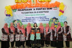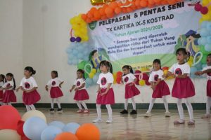 Suasana haru dan kegembiraan menyelimuti TK Kartika IX-5 Kostrad pada acara Pentas Seni dan Pelepasan Peserta Didik Tahun Ajaran 2024/2025. Sebanyak 120 anak dilepas/dinyatakan lulus untuk melanjutkan pendidikan ke jenjang berikutnya. Acara tersebut berlangsung di Gedung Olah Raga (GOR) Sapta Marga Brigif 3/TBS Kariango Maros Sulawesi Selatan pada Selasa (18/6/2025).