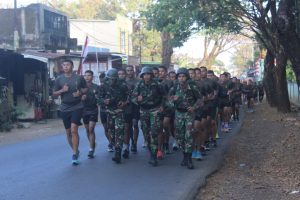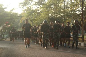 Kegiatan Lari 8 Km Yonif Linud 432/WSJ dalam rangka memelihara kemampuan fisik dan mental prajurit.
