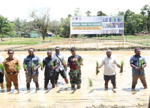 SUKSESKAN PROGRAM SWASEMBADA PANGAN, YONIF 754/ENK ADAKAN TANAM PADI BERSAMA PEMUDA TANI PROVINSI PAPUA TENGAH DAN MASYARAKAT